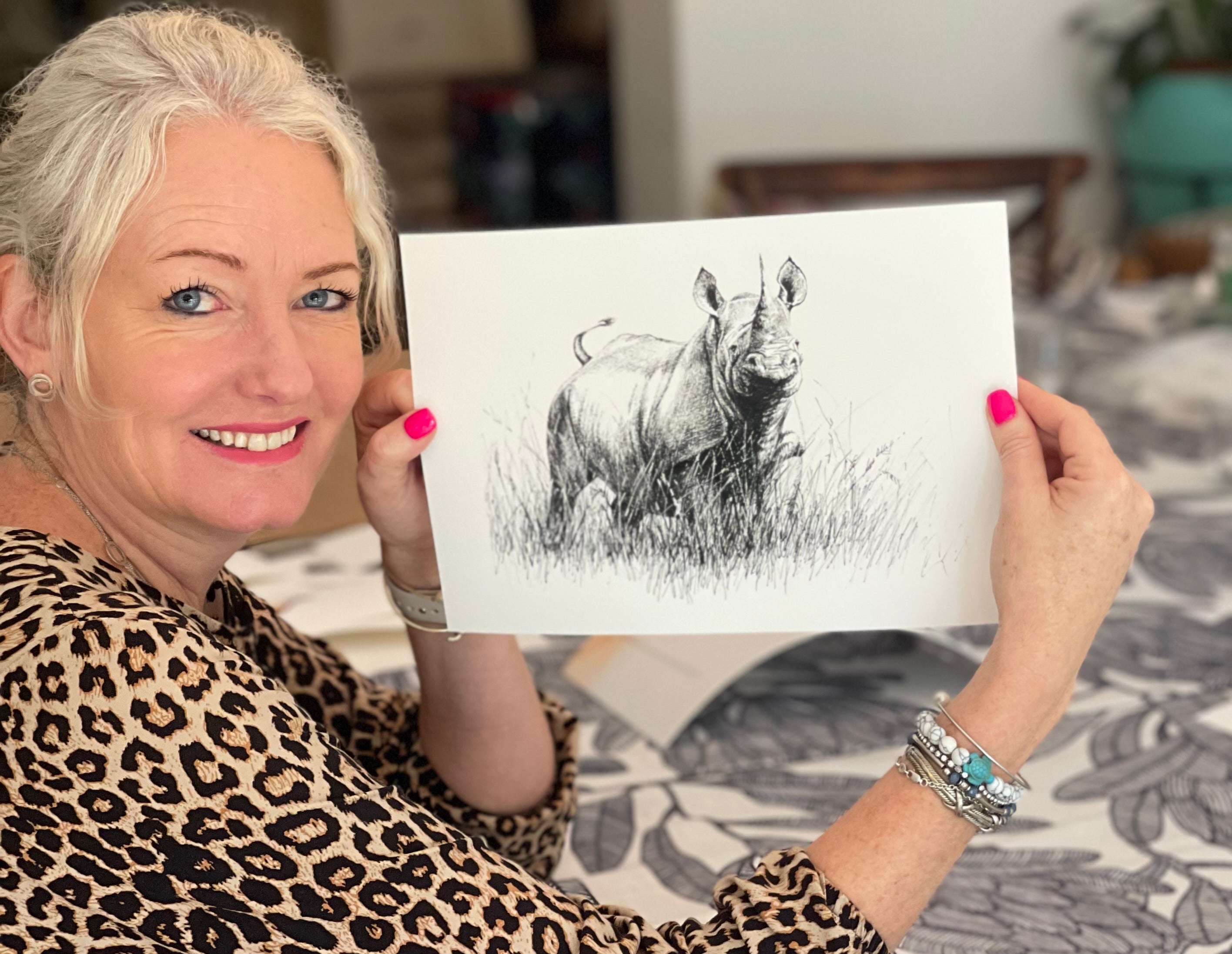 Another major contribution to conservation through her art was her participation in the 'Save the Waterberg Rhino' initiative, one of her all-time favourite exhibitions. Over several years, her works were auctioned in collaboration with Asprey, a prestigious British luxury brand known for its jewellery, craftsmanship and historical ties to royalty. All proceeds from these auctions were donated to rhino conservation efforts in the Waterberg area, directly supporting the protection of this endangered species.