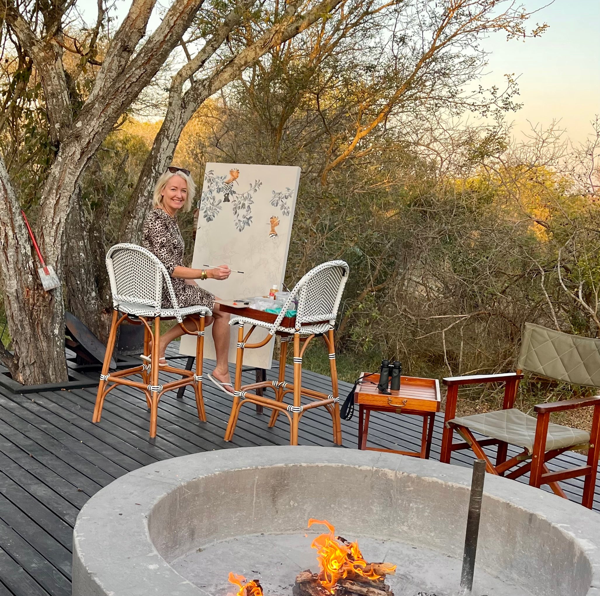 Over the years, Kim explored various mediums, including acrylic, graphite, charcoal, pastel, and ceramics. However, she found her true passion in oil painting, drawn to its rich textures and depth. Her work captures the essence of Africa, from its landscapes to its diverse birdlife and wildlife. More than just art, her paintings became a way to advocate for conservation. “It’s my hope that my art will serve as a voice for conservation.” Her commitment to wildlife preservation has led her to exhibit her work internationally in London, and locally in Johannesburg, Nelspruit, and White River. Her paintings are collected across Europe, America, and Australia. One of her most significant contributions was donating an oil painting of a bull elephant to Space for Giants, an international conservation charity. The artwork was displayed in the House of Lords and auctioned to support conservation efforts.